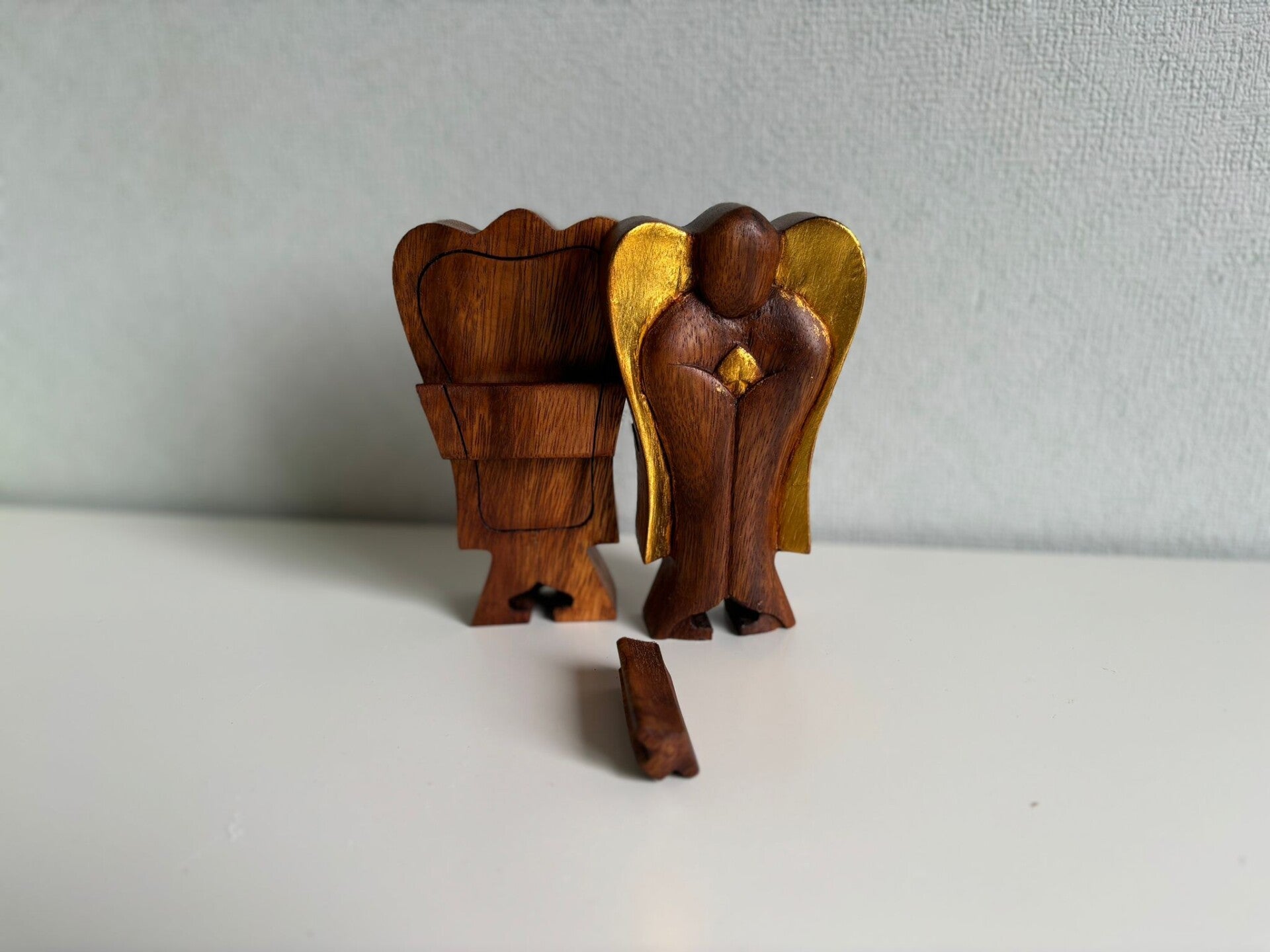 Deze prachtige Hati-Hati Engelen worden in een Indonesisch bergdorp gesneden uit Suar hout - een duurzaam hardhout.