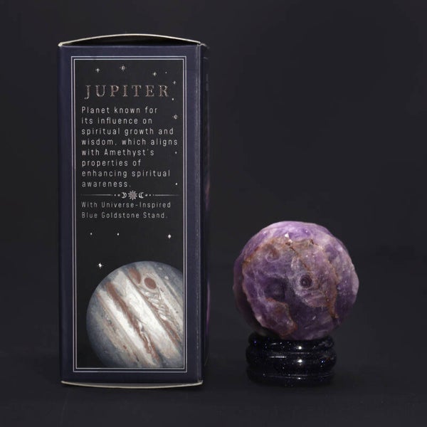 De planeten worden gepresenteerd op een solar goldstone standaard, ontworpen met schitterende insluitingen die een opvallende en aardende uitstraling creëren. Deze standaard versterkt de schoonheid van de edelsteenplaneten en weerspiegelt het wonder en mysterie van het universum.