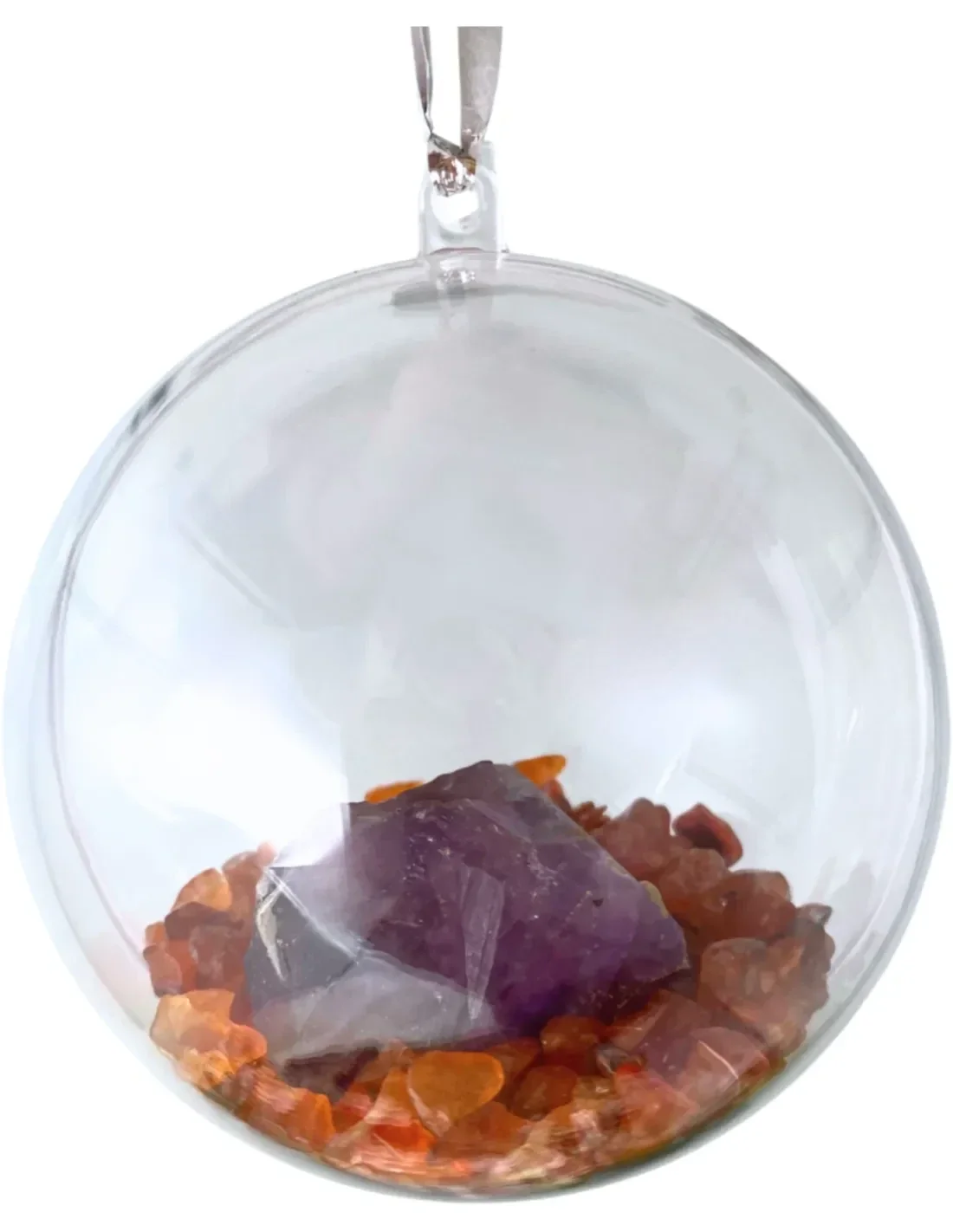 Voeg de Kerstbal Carneool met Amethist toe aan je kerstdecoratie en ervaar de krachtige, positieve eigenschappen van deze bijzondere edelstenen. Bestel nu en creëer een warme, harmonieuze sfeer tijdens de feestdagen!