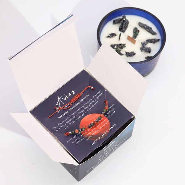 Perfect om de niet te stoppen aard van Ram te vieren, is deze kaars- en armbandset een betekenisvol cadeau of een persoonlijk ritueel voor empowerment.