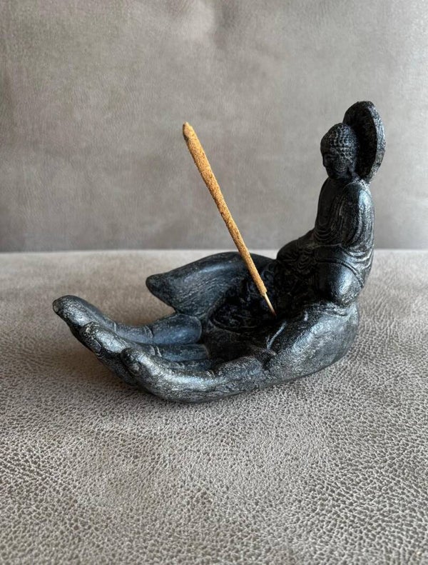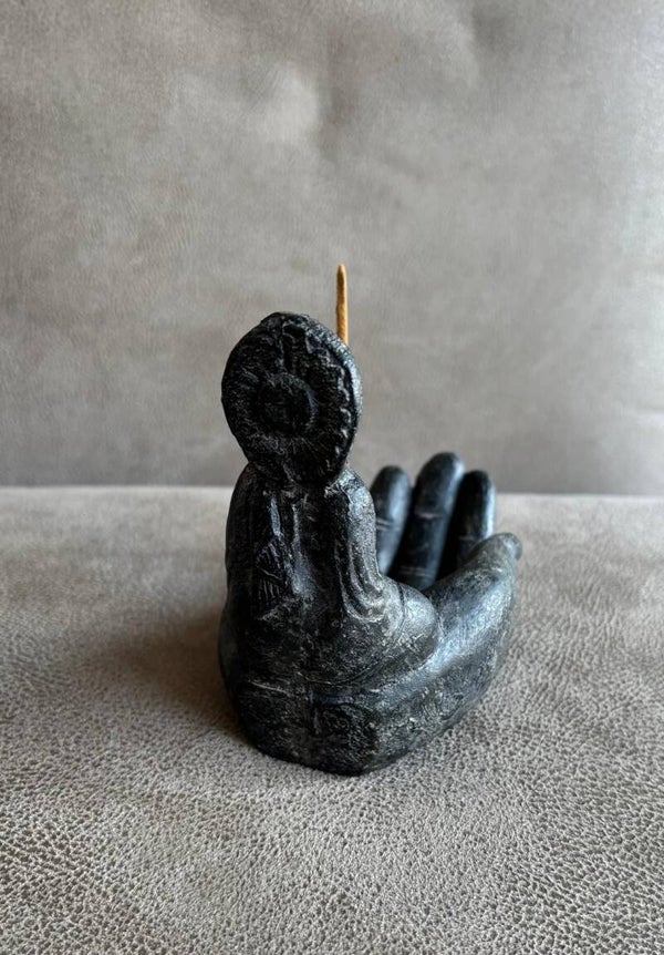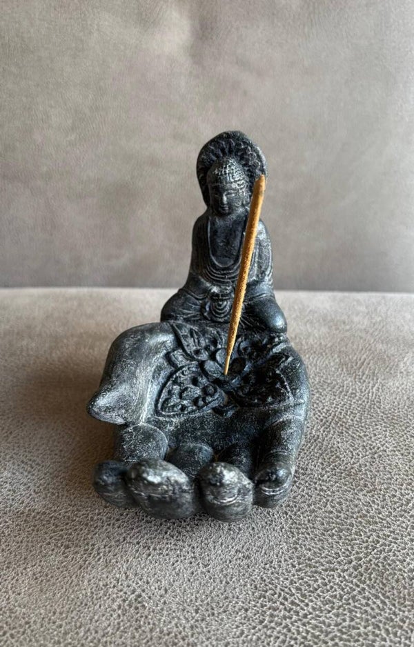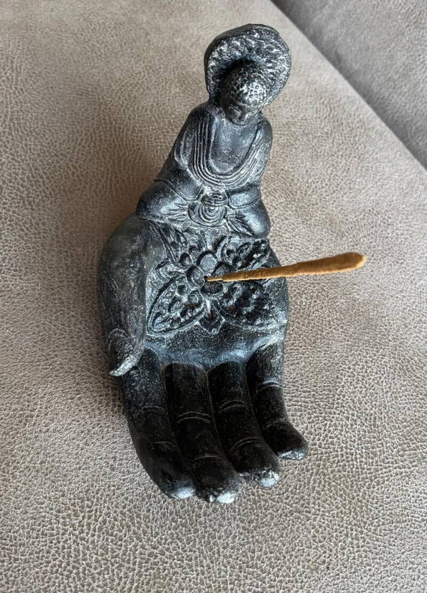 De Boeddha en Hand Wierookbrander combineert op prachtige wijze twee krachtige symbolen van spirituele verbinding en leiding. Dit prachtige ontwerp toont het serene gezicht van de Boeddha, omringd door een delicaat gebeeldhouwde hand. Symbolisch voor zorgzaamheid en ondersteuning, vertegenwoordigt deze brander de mededogende aard van de Boeddha's leer. Het dient als een herinnering aan de harmonieuze balans tussen menselijke inspanning en goddelijke tussenkomst.