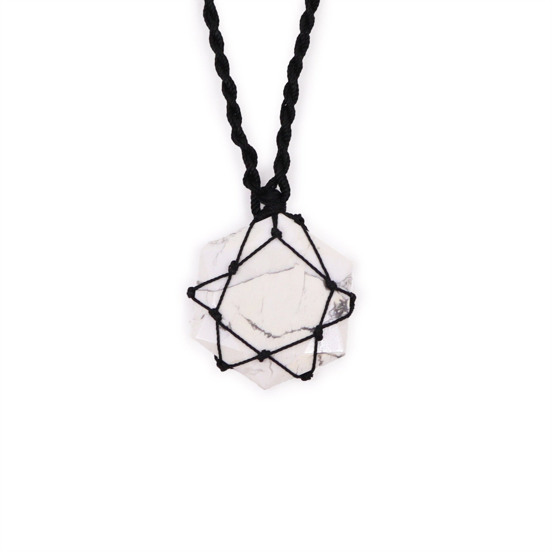 Elke Witte Howliet Zeshoek Hanger is intrigerend geknoopt, waardoor de natuurlijke aantrekkingskracht van de edelsteen bij elke keer dragen straalt. Het verstelbare koord zorgt niet alleen voor een comfortabele maar ook een gepersonaliseerde pasvorm.