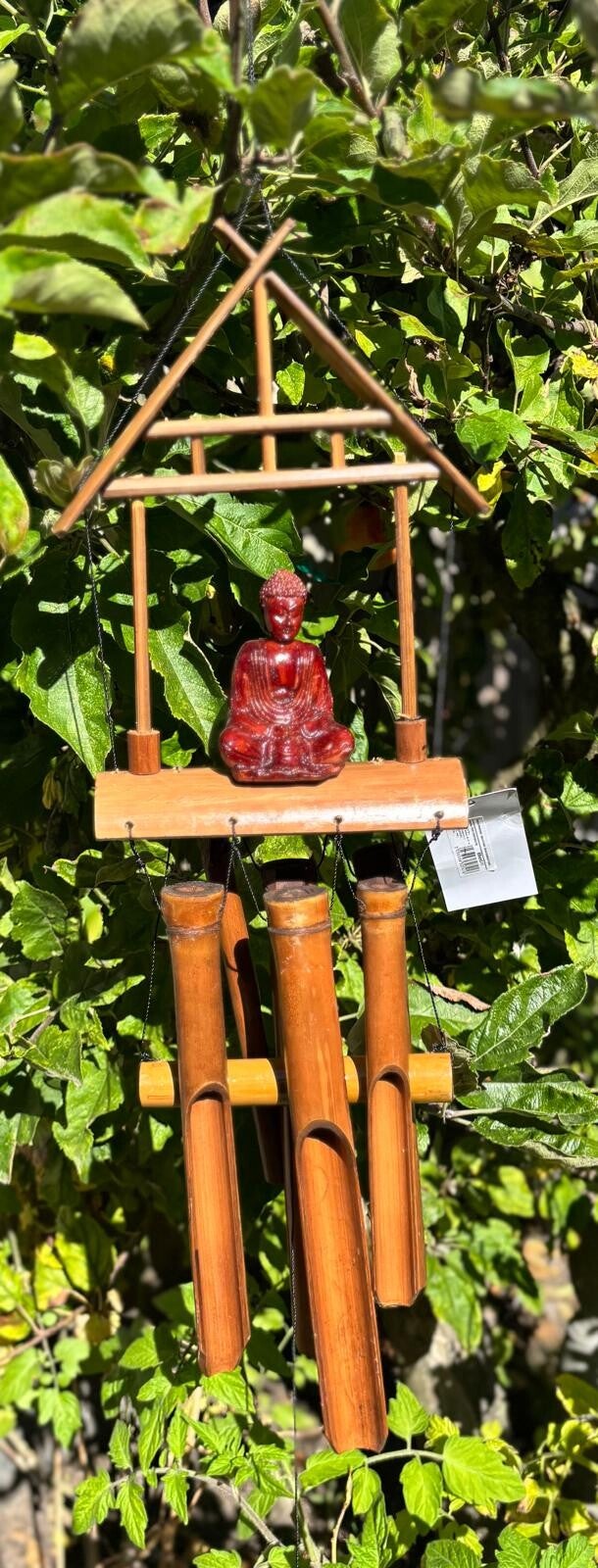 Bamboo Windgongen - Natuurlijke Afwerking - Bruine Boeddha 6 Buizen