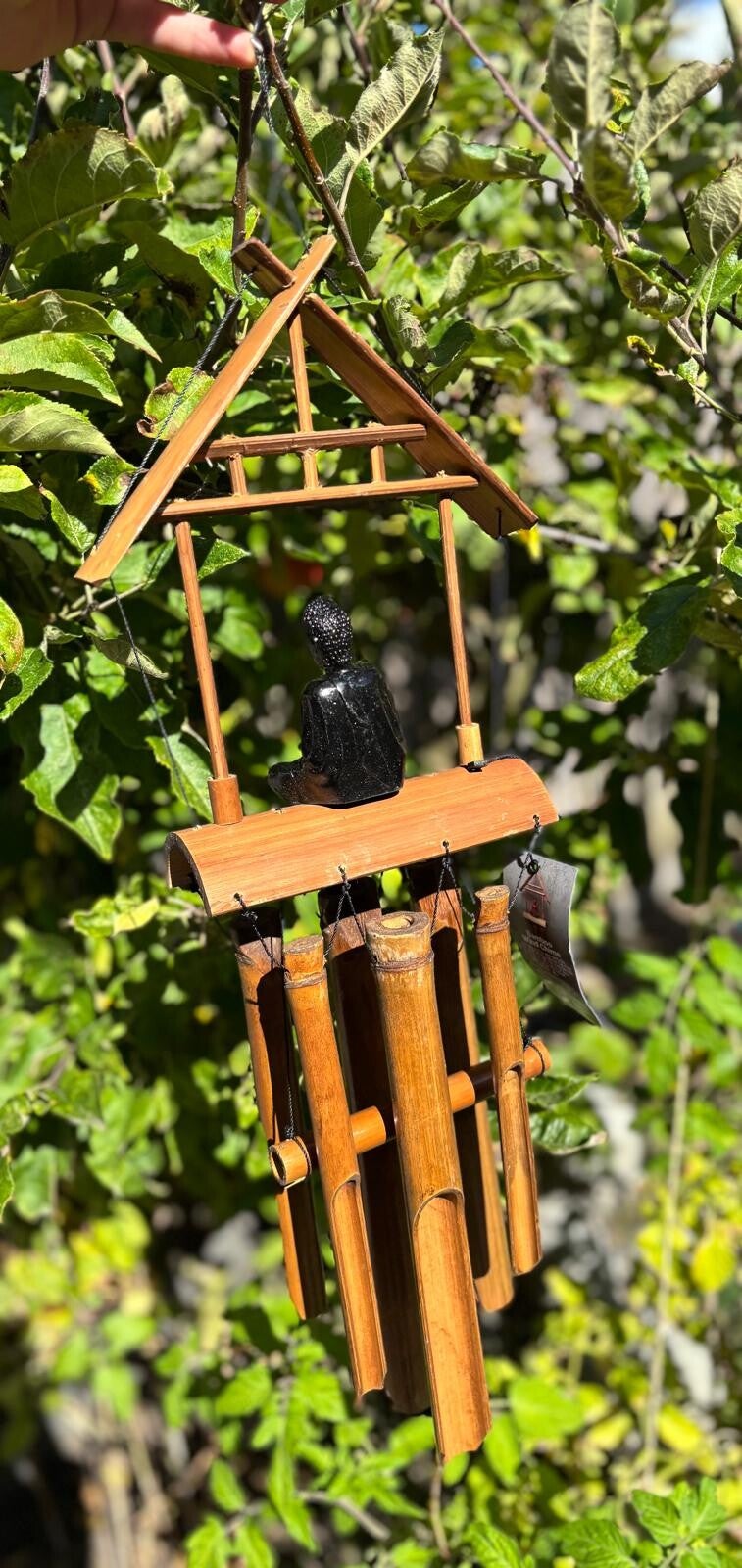 De natuurlijke afwerking van het bamboe, in combinatie met de elegantie van een zwarte Boeddha-figuur, voegt een vleugje zen en rust toe aan elke tuin, patio of binnenruimte. Deze windgongen zijn niet alleen perfect voor persoonlijk gebruik maar ook een doordacht geschenk voor liefhebbers van meditatie, yoga en iedereen die de rust en kalmte van de natuur waardeert.
