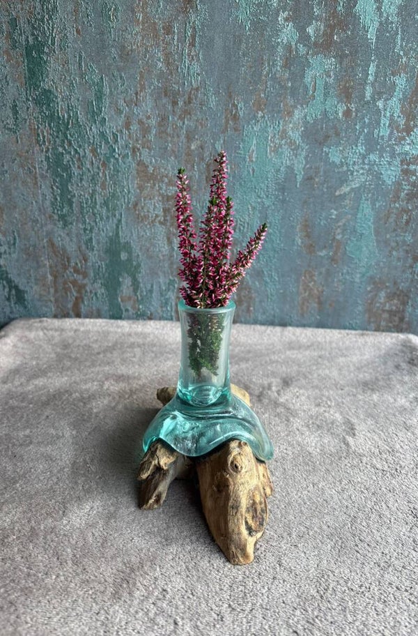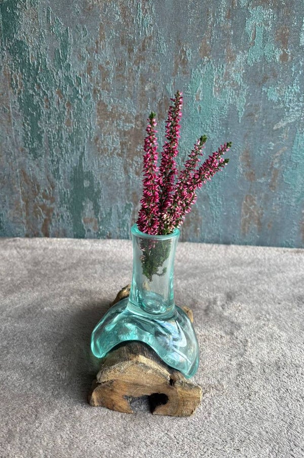Gesmolten Glazen Kleine Bloemenvaas op Hout