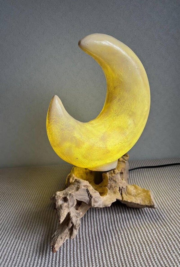 DriftGlow Lamp met Crackle Halvemaan Kap – Grijs